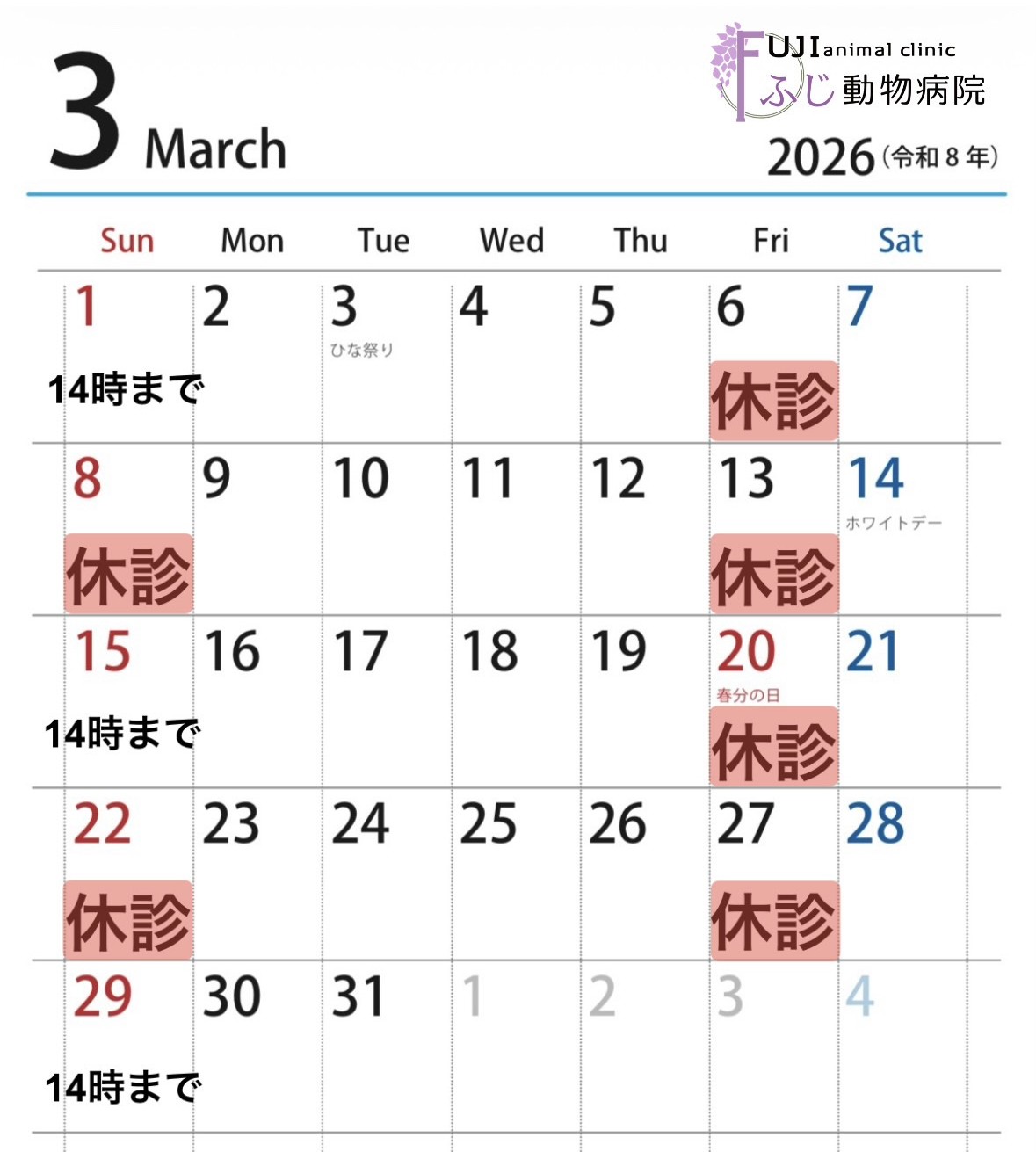はじめまして、ふじ動物病院です。このたび、2024年4月30日に岡山県倉敷市西中新田で新規開院いたしました。